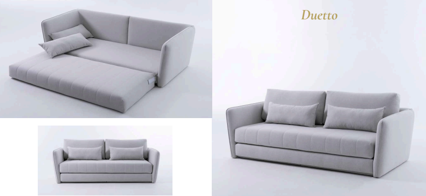 Assentos retráteis com molas bonnel e molas ensacadas, espuma D 26 Soft e fibra manta. Encosto reclinável e almofada lombar solta com espuma D 35 Hiper Soft e fibra manta. Pés em madeira e rodízios de silicone.